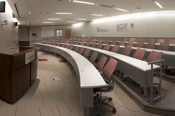 To serve the joint vision of OSF HealthCare and University of Illinois College of Medicine at Peoria for excellence in education and in the delivery of health care outcomes, large gathering spaces permit multiple simultaneous events.
