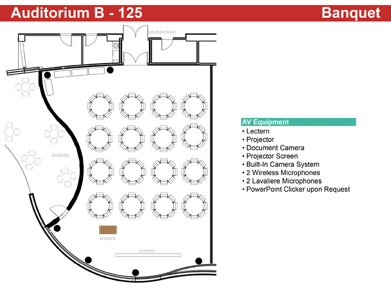 Auditorium B - Banquet Seats up to 125 Click Image to See Full |