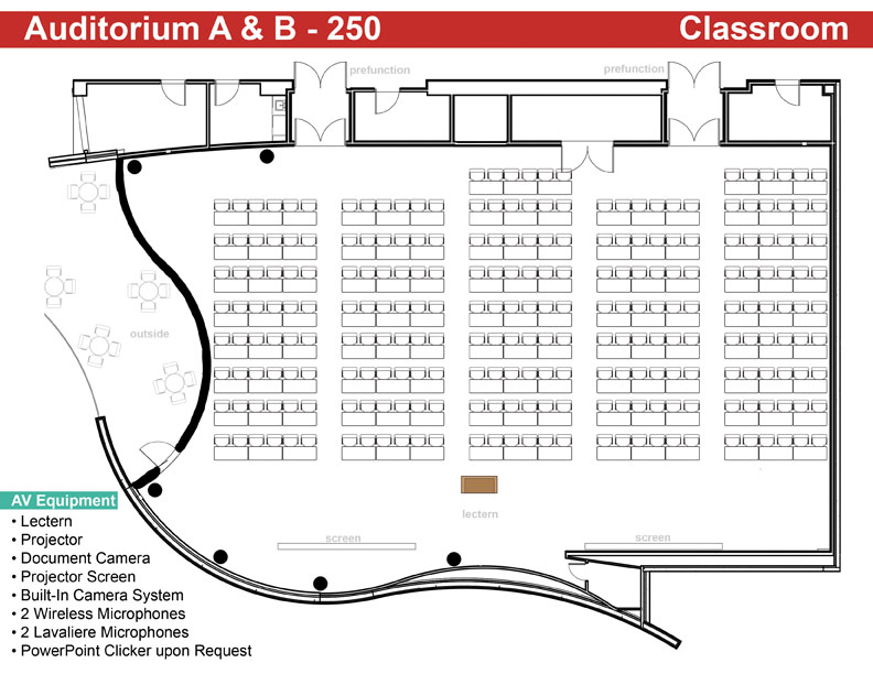 Auditorium A & B - Classroom Seats up to 250 Click Image to See Full |