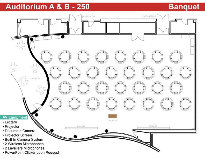 Auditorium A & B - Banquet Seats up to 250 Click Image to See Full |